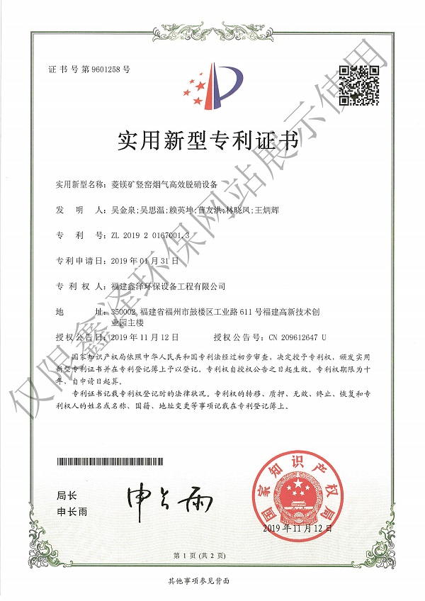 菱镁矿竖窑烟气高效脱硝装置
