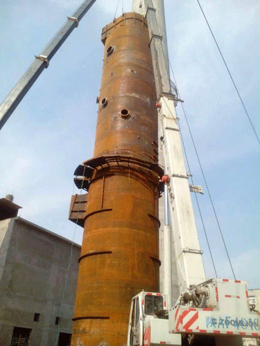 由我公司承建的西安嘉晟热力有限公司70MW热水锅炉烟气脱硫工程于5月18日塔体顺利封顶。现已开始塔体完善,平台、斜梯制作安装,争取尽快移交防腐、保温施工。