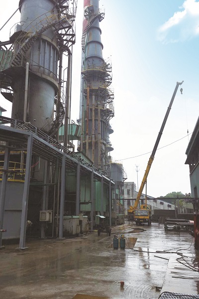 本工程改造工期紧迫,在明确生产任务后,公司立即选择确定施工队伍,利用原项目部仍在现场的优势,组织安排施工人员和机具进场,采购工程材料进场,在业主停炉前先行预制准备施工。目前,湿电上锥段、下锥段、湿电段的预制施工正在进行。待业主停炉后,立即开始直排烟囱和锥段拆除、湿电筒体段和锥段的预防腐等各项改造施工。